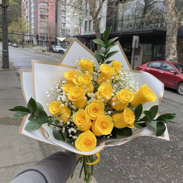 $24.990 - $57.990Rango de precios: desde $24.990 hasta $57.990Sorprende hoy con nuestro Bouquet Deluxe de Rosas Amarillas, disponibles con 8, 16 o 24 rosas rojas, cuidadosamente seleccionadas, acompañados de follaje de temporada e ilusión, envueltos en papel negro para destacar la belleza de las flores. El detalle perfecto para cualquier ocasión.