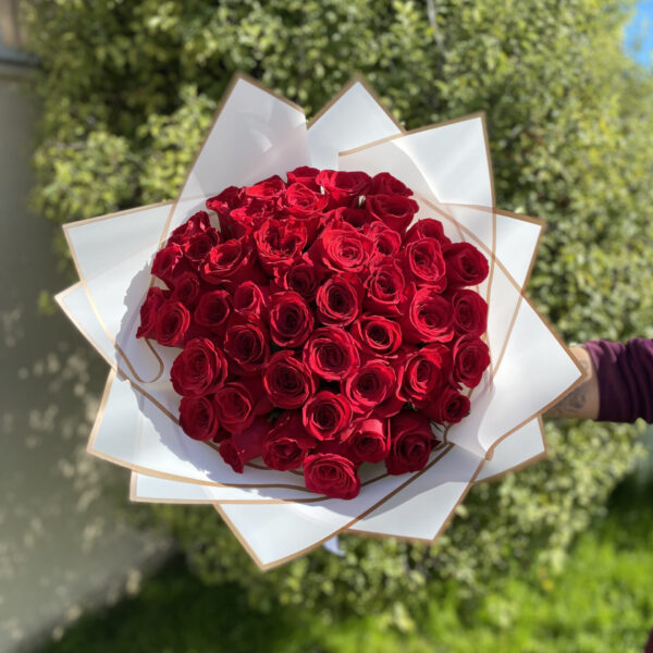 $199.900El precio original era: $199.900.$99.990El precio actual es: $99.990.Sorprende hoy con nuestro Bouquet Exclusivo de 50 rosas rojas, frescas y seleccionadas cuidadosamente, envueltas en papel color blanco, con cintas color blanco y rojo para destacar el color rojo de las rosas. Ideales para cualquier tipo de ocasión.