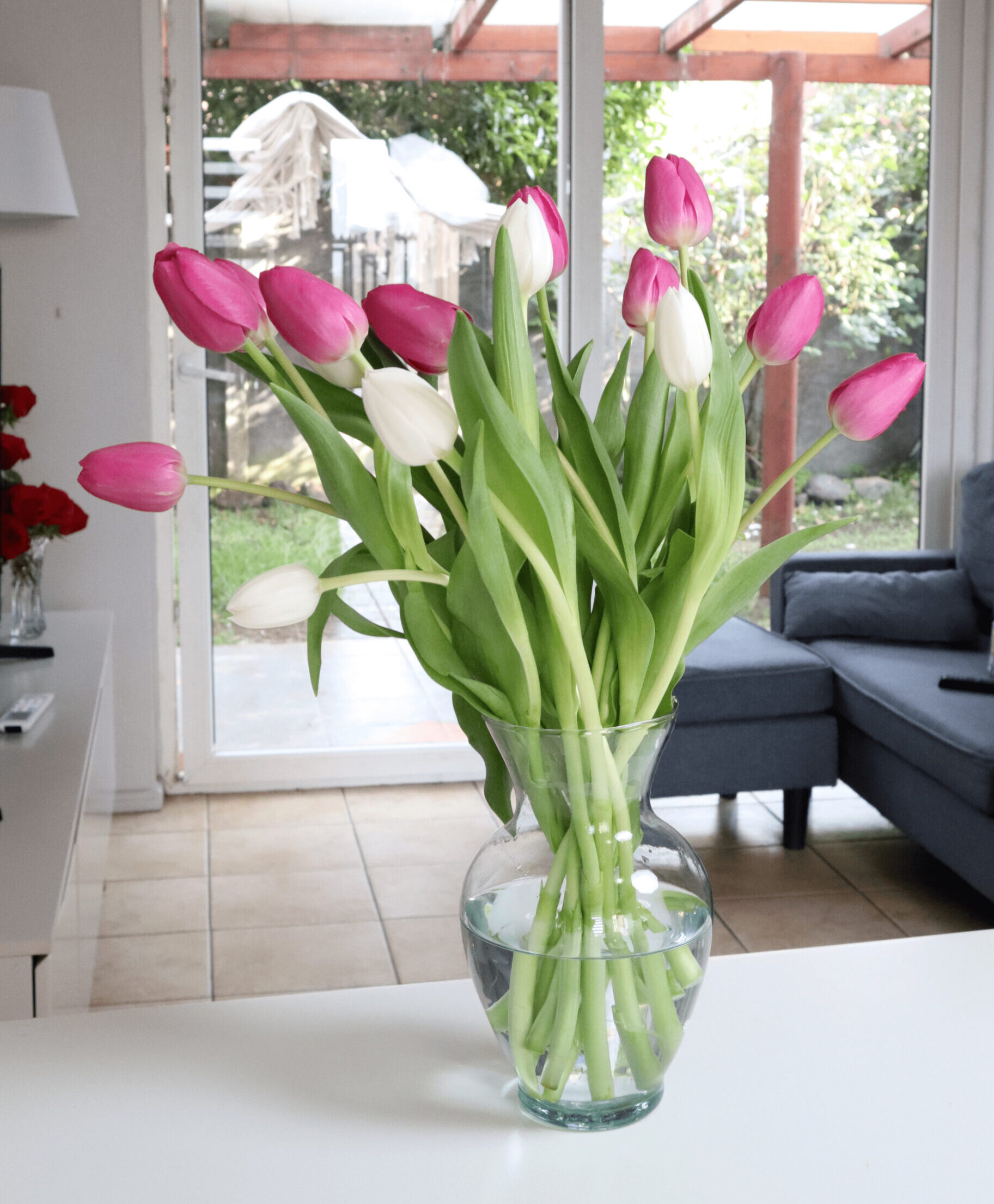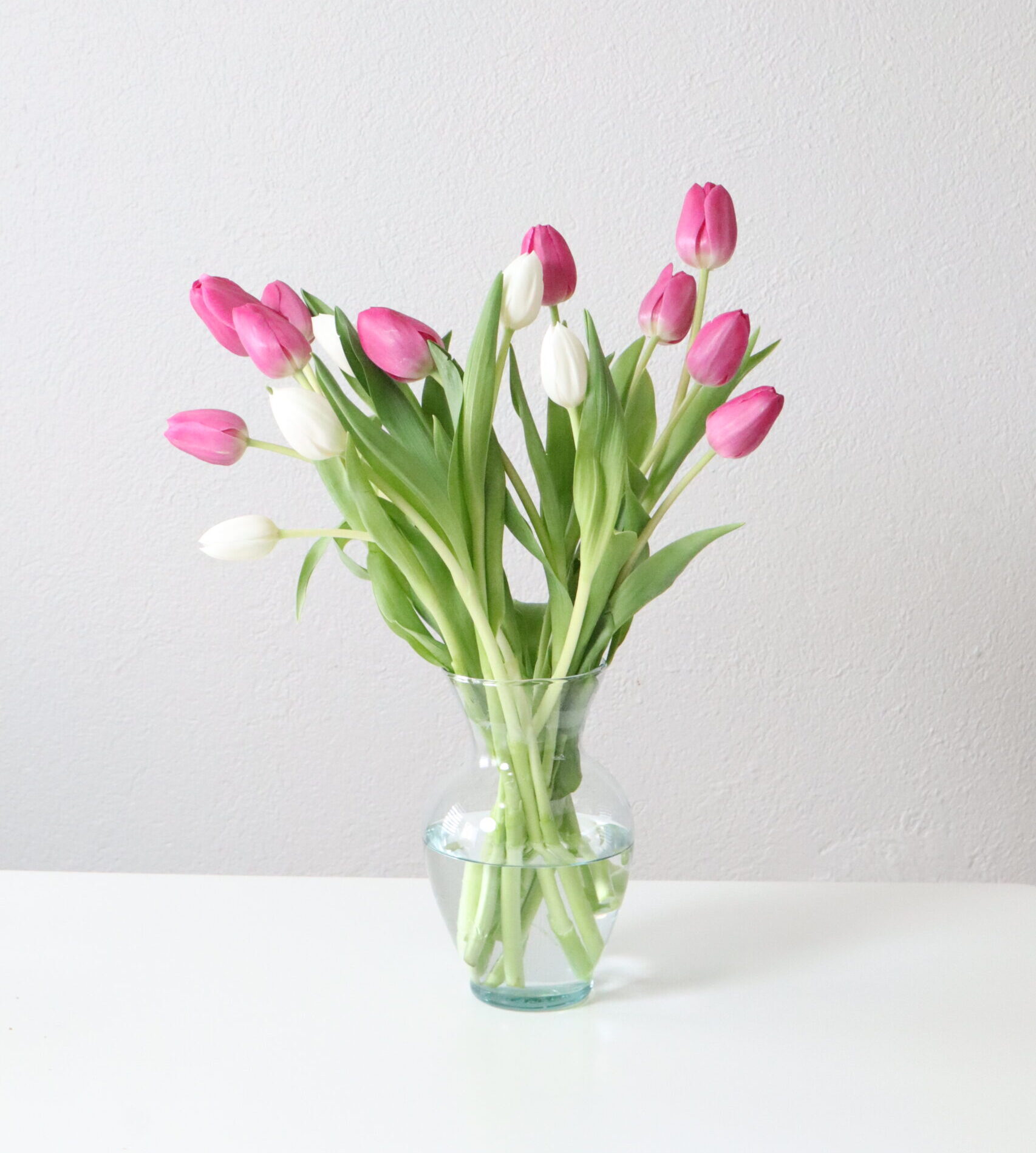 Tulipanes Mixtos con Florero de Vidrio